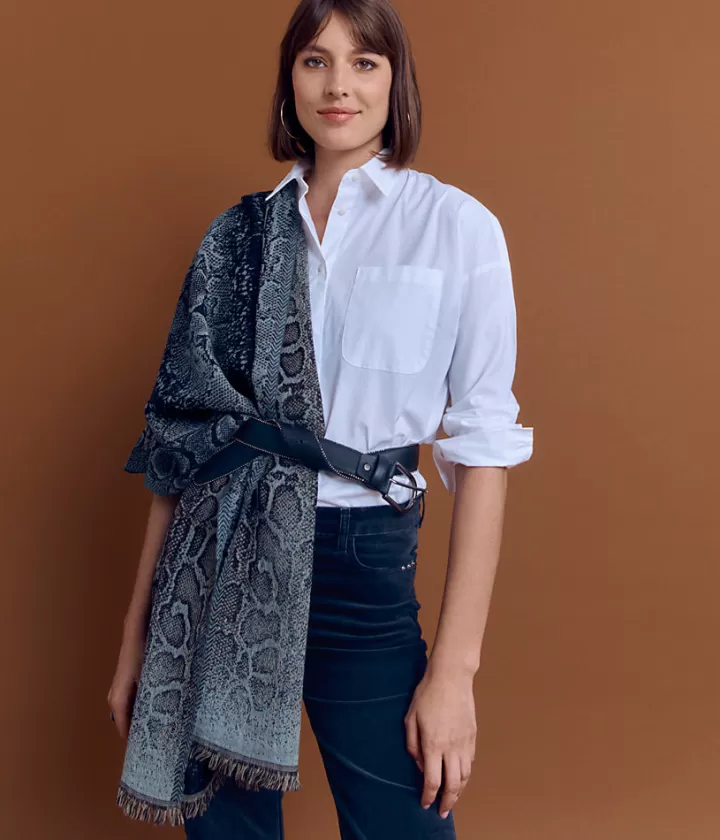 Maille | Vestes & Manteaux>DEVERNOIS Manteau maille jaquard irisée Tricoté en France Bleumarine