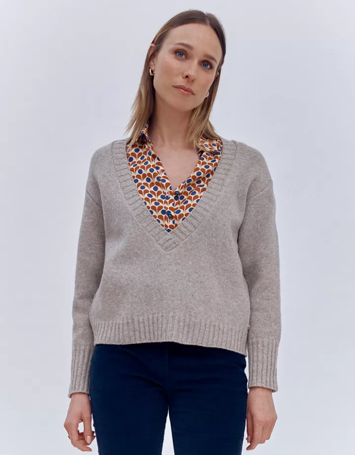 Maille>DEVERNOIS Pull encolure V profonde Made in France Grege