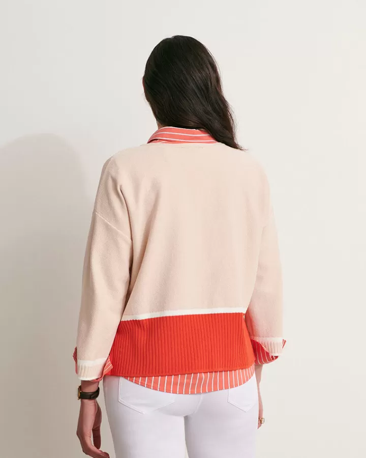 Notre pull boîte iconique en maille revient cette saison dans un colorblock, parfait pour toutes les femmes en quête de confort et de style. Tricoté en France dans nos ateliers historiques de Roanne, il témoigne d’un savoir-faire français exceptionnel. Sa maille piquée stretch offre une sensation agréable sur la peau, tandis que sa palette raffinée de beige, blanc et rouge coquelicot apporte une touche de fraîcheur à votre vestiaire.