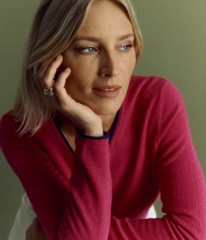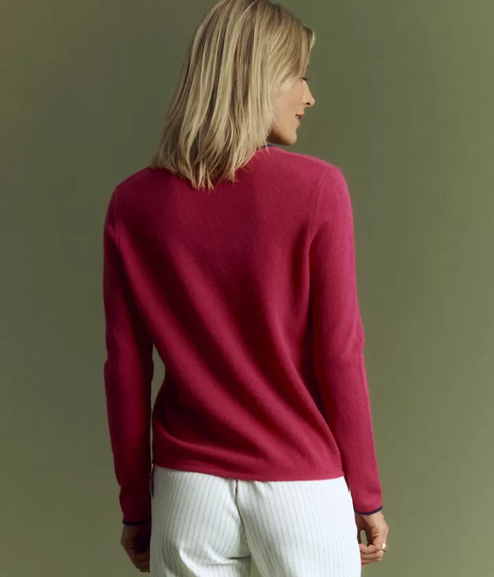 Pull en cachemire bicolore.- Pull uni 100% cachemire- Encolure V- Manches longues- Biais contrasté sur les poignets et …