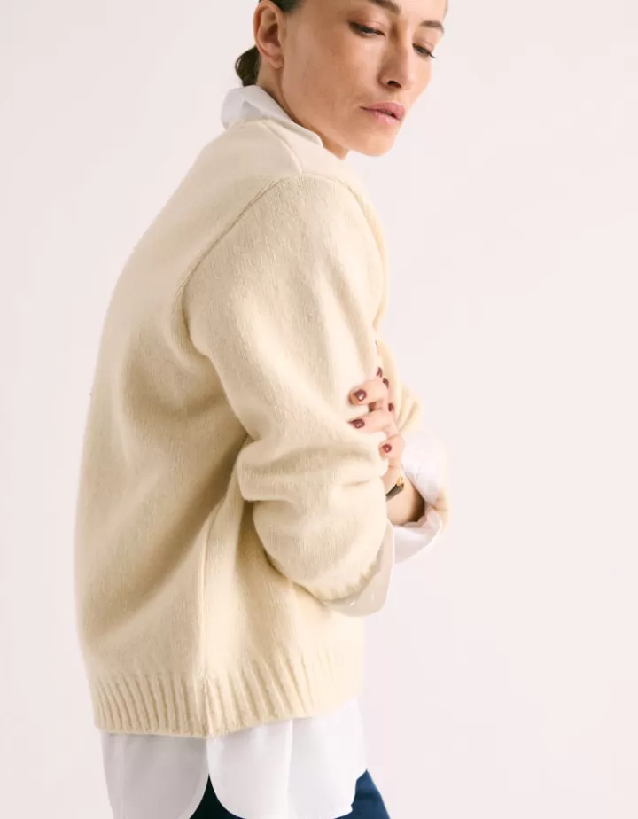 Maille>DEVERNOIS Pull encolure V profonde Made in France Blanccasse