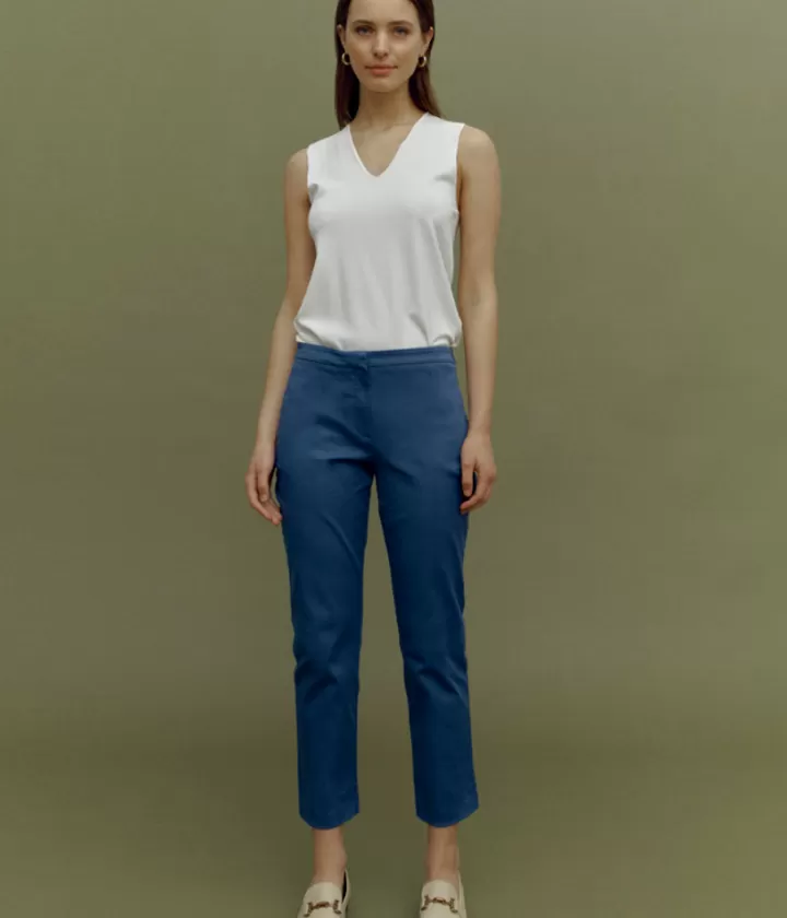 Pantalon droit en coton stretch.- Pantalon coupe droite, longueur 7/8ème- Poches italiennes, 2 fausses poches passepoil…