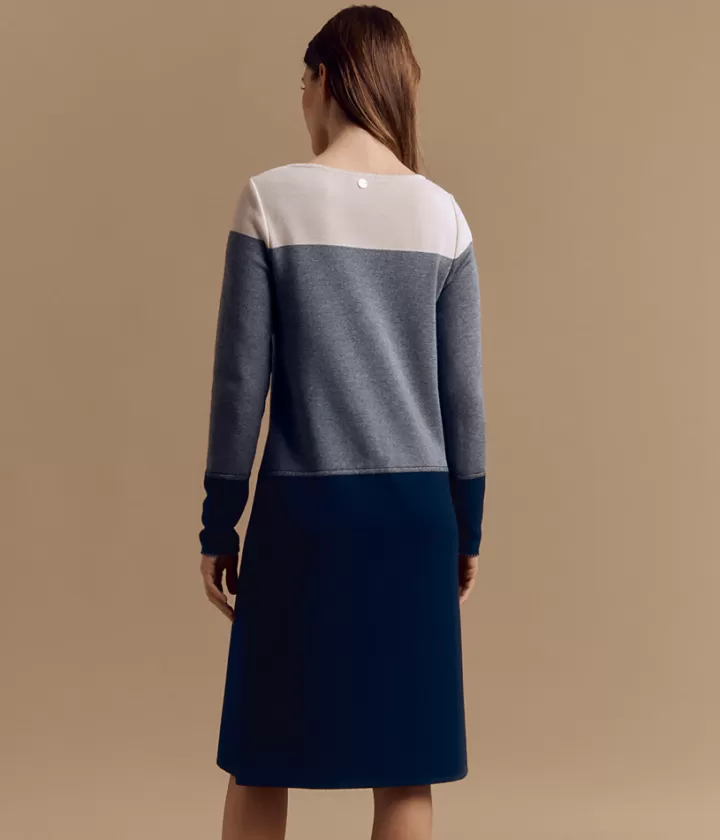 Robes & Jupes | Maille>DEVERNOIS Robe maille en laine Mérinos et viscose Tricotée en France Bleumarine