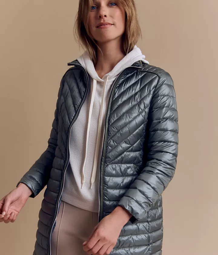 Doudoune longue matelassée.- Doudoune longue avec jeux de surpiqûres- Manches longues- Fermeture par zip sur l’,avant-…