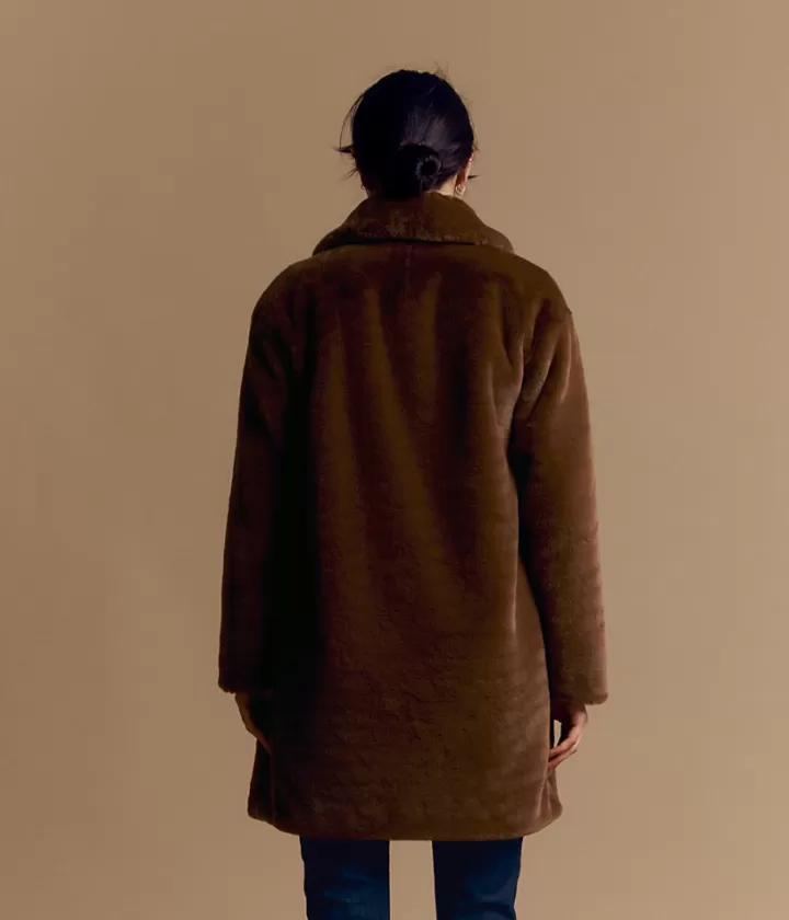 – Manteau mi-long en fausse fourrure