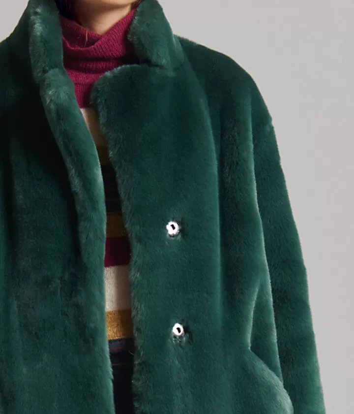 Vestes & Manteaux>DEVERNOIS Manteau vert sapin En fausse fourrure