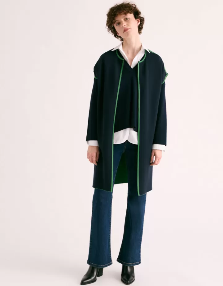 Vestes & Manteaux | Maille>DEVERNOIS Manteau maille milano en mérinos Tricoté en France Marine