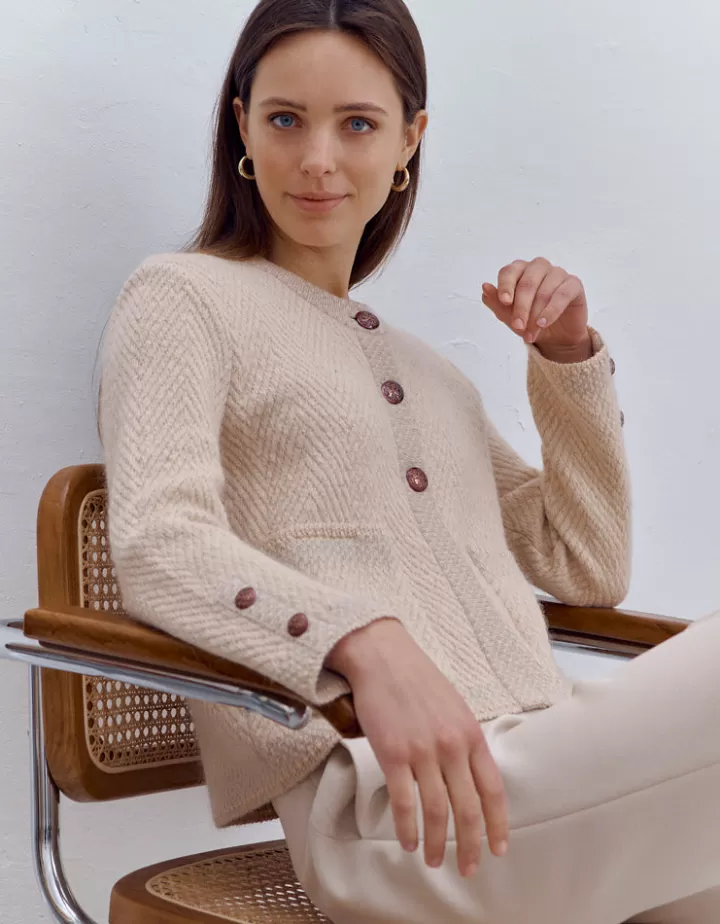 Vestes & Manteaux | Maille>DEVERNOIS Veste courte en laine et cachemire Tricotée en France Beige