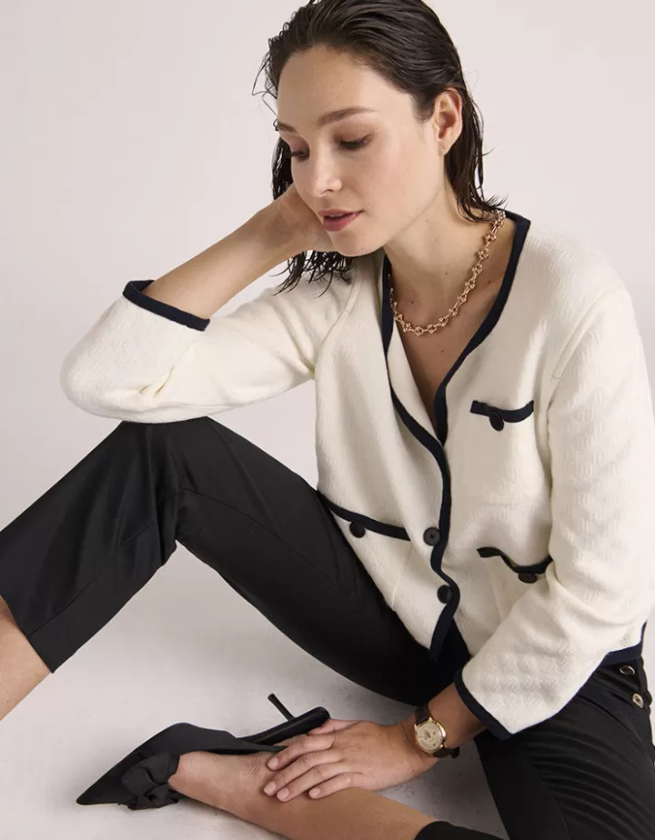 Vestes & Manteaux | Maille>DEVERNOIS Veste courte maille jacquard Tricoté en France Blanccasse