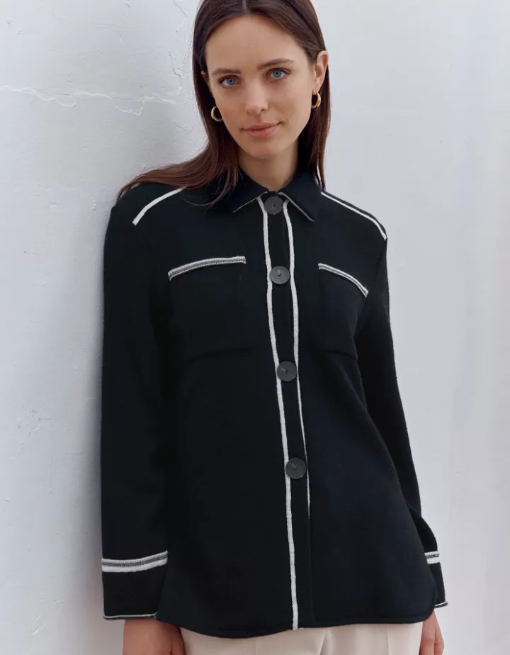 Vestes & Manteaux | Maille>DEVERNOIS Veste maille en laine et cachemire Tricotée en France Noir