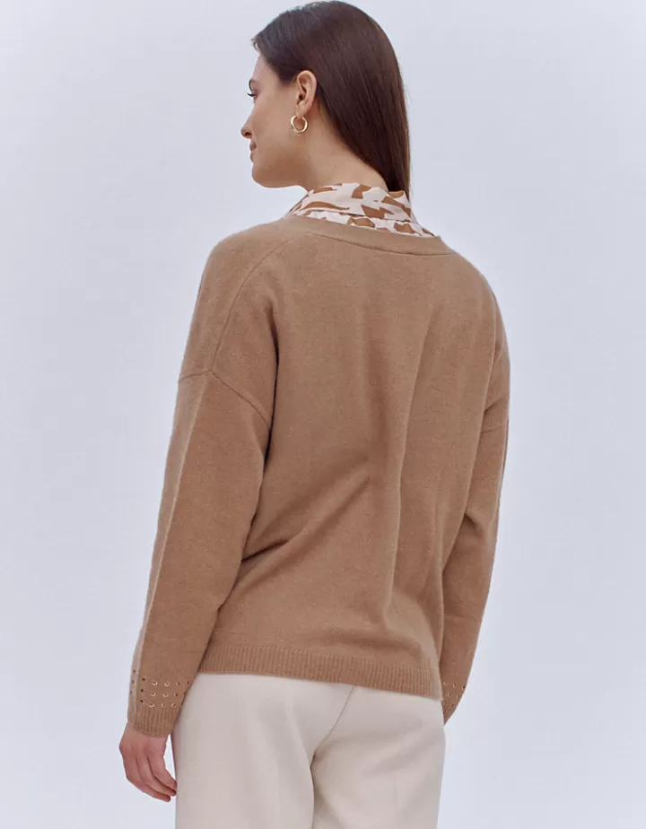 Maille>DEVERNOIS Gilet en laine et cachemire Détails clous Marroncappuccino