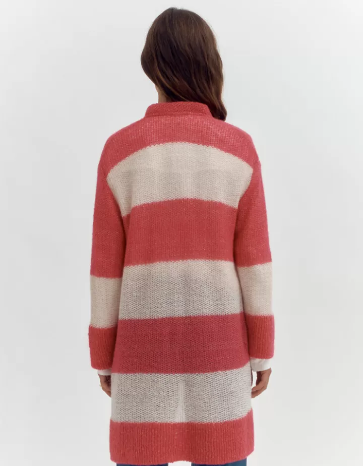 On adore sa maxi rayure bicolore pleine d’énergie, et tous les détails qui font la force stylistique de ce gilet, comme la lisière qui vient souligner le devant du gilet, lui offrant une esthétique soignée et délicate.