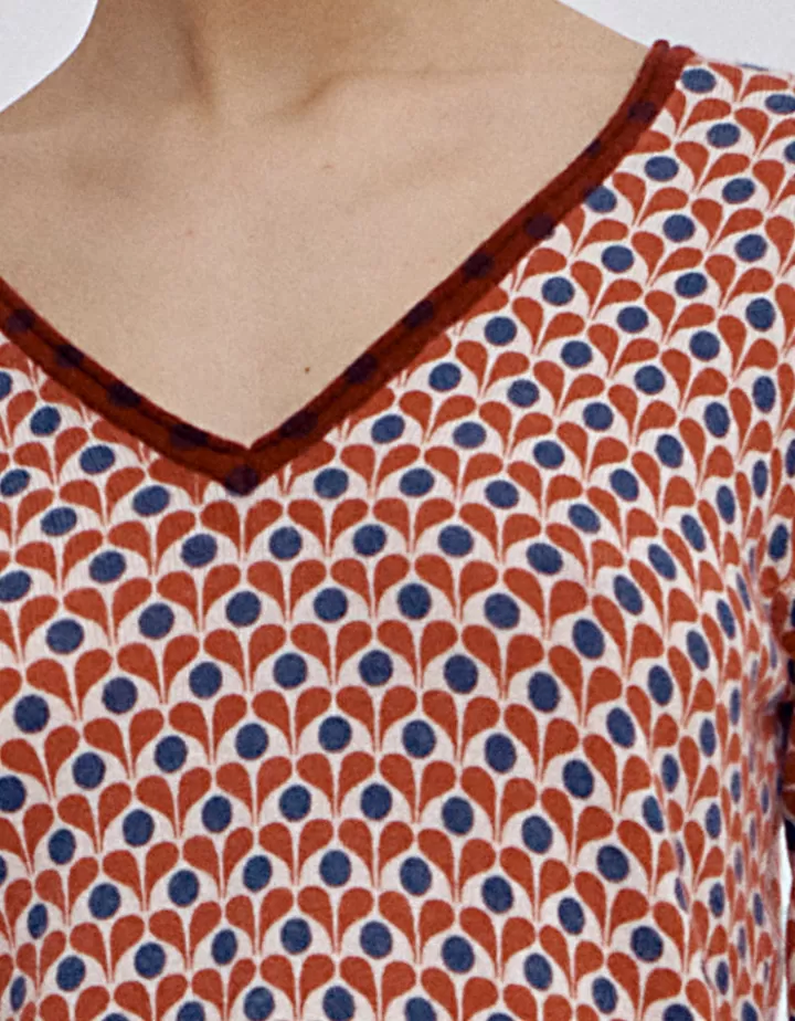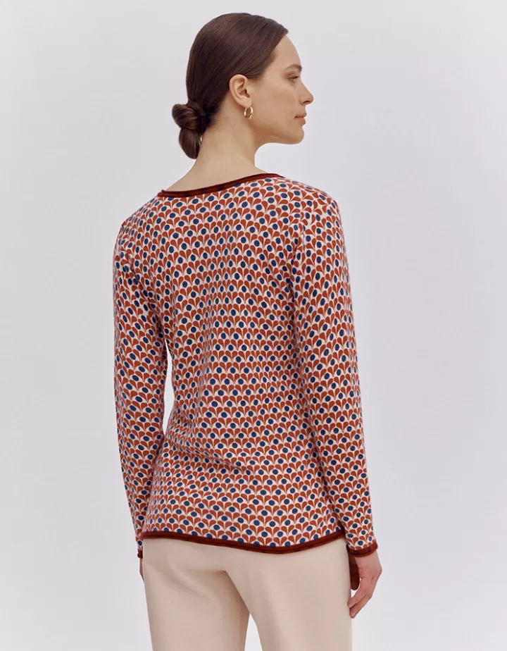 Pull imprimé en laine et cachemire.- Coupe cintrée- Encolure V- Bande contrastée avec bord roulotté sur l’encolure, …