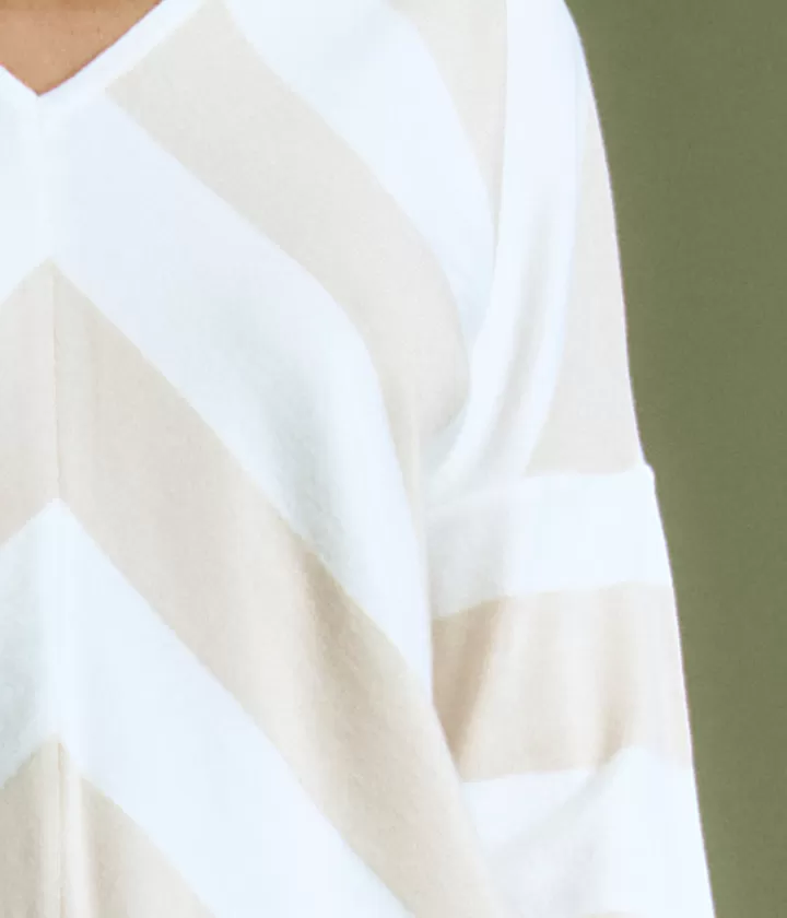 Pull maille avec jeux de rayures chevrons tricoté en France.