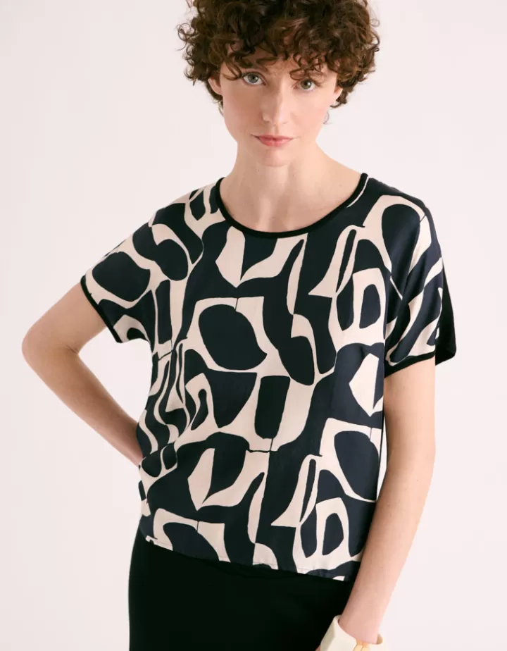 À l’avant, le précieux twill de soie imprimé dévoile un imprimé arty envoûtant, mariant avec subtilité tradition et modernité. Pièce forte à porter seule ou à associer en twin-set avec le gilet GAUGUIN coordonné, on l’adopte pour son allure résolument actuelle, chic et décontractée à la fois.