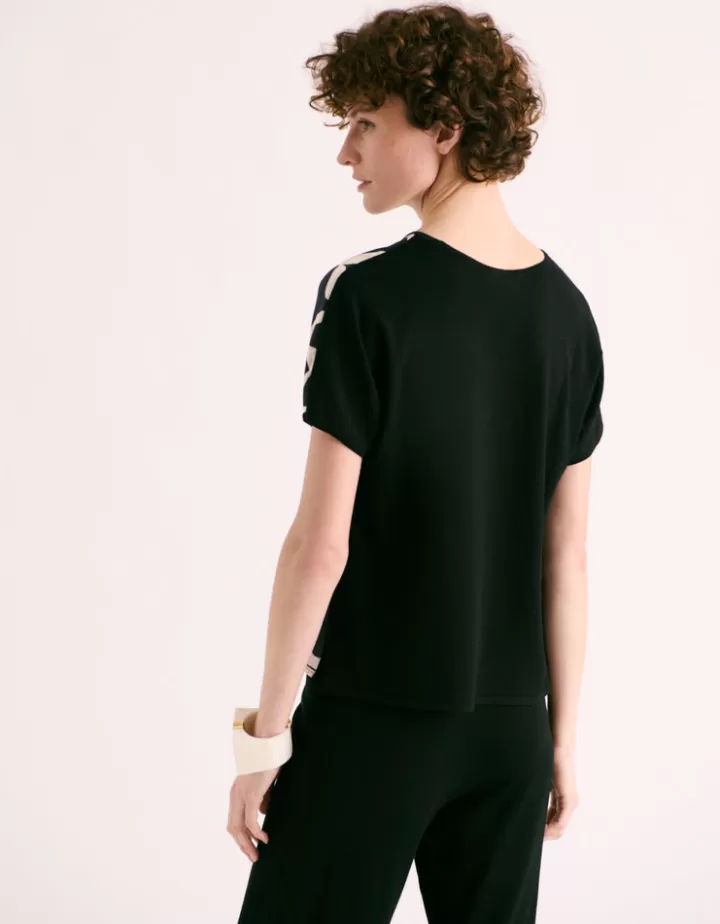 Conjuguant l’élégance intemporelle de la soie et le confort chaleureux du tricot, ce pull bi-matière réinvente les codes du style avec audace. Ses manches amples à l’esprit kimono apportent une touche d’originalité à la pièce, tandis que l’encolure arrondie soulignée d’une bande remaillée affirme son caractère contemporain.