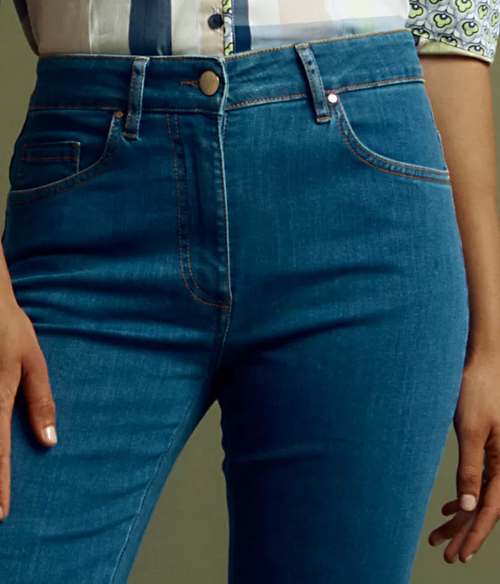 Jeans délavé droit en coton lavé.- Longueur 7/8ème- 5 poches dont 1 poche ticket- Surpiqures en ton opposé- Broderi…