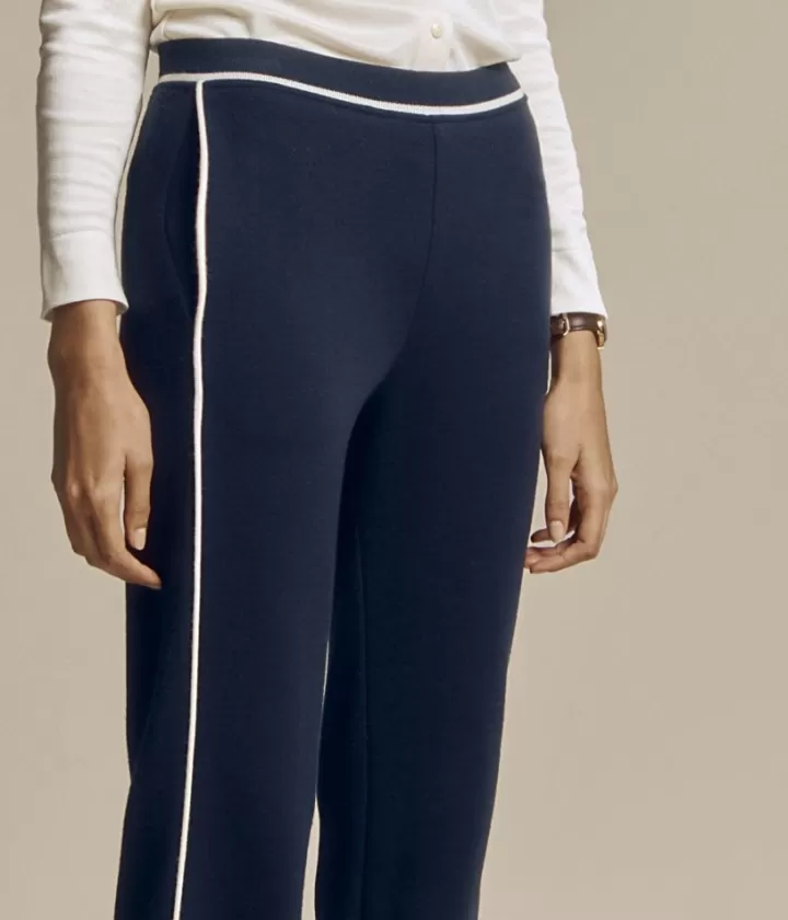 Pantalons>DEVERNOIS Pantalon en laine Mérinos galon contrasté Tricoté en France
