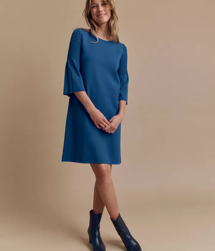 Robes & Jupes | Maille>DEVERNOIS Robe maille à manches 3/4 Tricotée en France Bleuencre