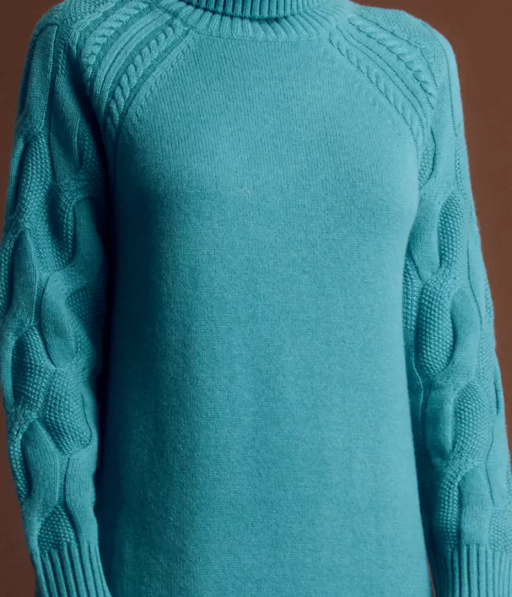 Robe maille en laine et cachemire à col roulé.- Emmanchures raglan en torsade- Col roulé- En laine et cachemire
