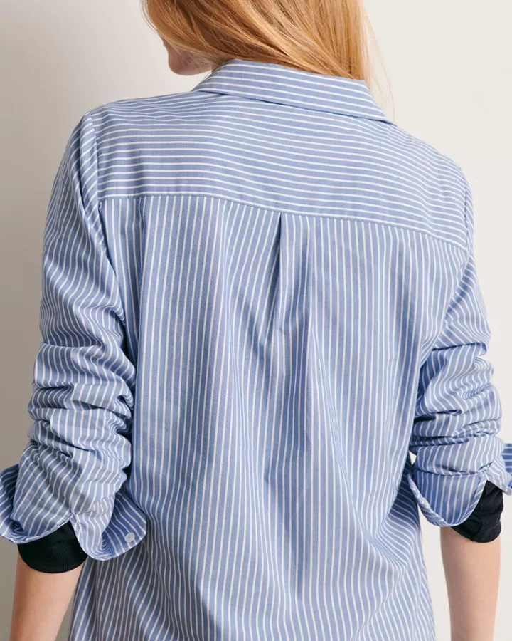 Cette chemise à rayures se distingue par son élégance intemporelle.