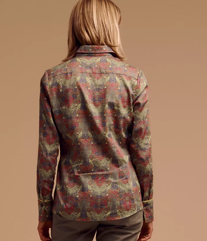 Chemise cintrée en popeline de coton imprimée.- Tissu français- Imprimé floral- Empiècement au dos et à l’avant- P…