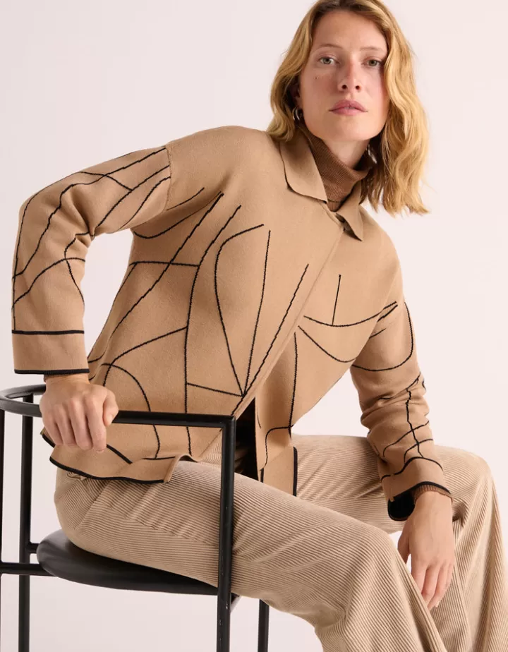 Vestes & Manteaux | Maille>DEVERNOIS Veste maille jacquard double face Tricotée en France Beige